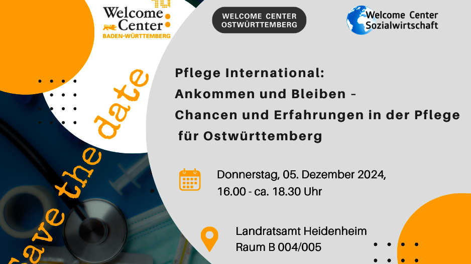 Anmeldung unter: https://anmeldung.ostwuerttemberg.de/event/pflege-international-ankommen-und-bleiben-chancen-und-erfahrungen-in-der-pflege-fur-ostwurttemberg