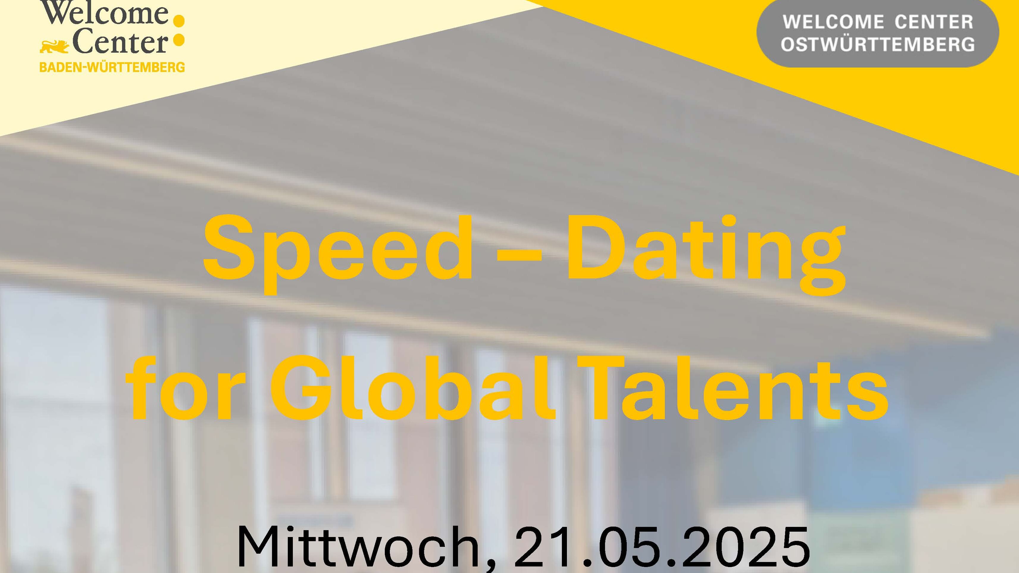 Wir freuen uns, Sie als Unternehmen und internationale Fachkraft bzw. Student*in herzlich zu unserem kostenfreien Speed-Dating for Global Talents einzuladen. Bei unserem Speed Dating haben internationale Studierende regionaler Hochschulen sowie internationale Fachkräfte und regionale Unternehmen die Gelegenheit, sich kennenzulernen und wertvolle Kontakte zu knüpfen. Dieses Jahr bieten wir das Format wieder in Kooperation mit der IHK Ostwürttemberg an.